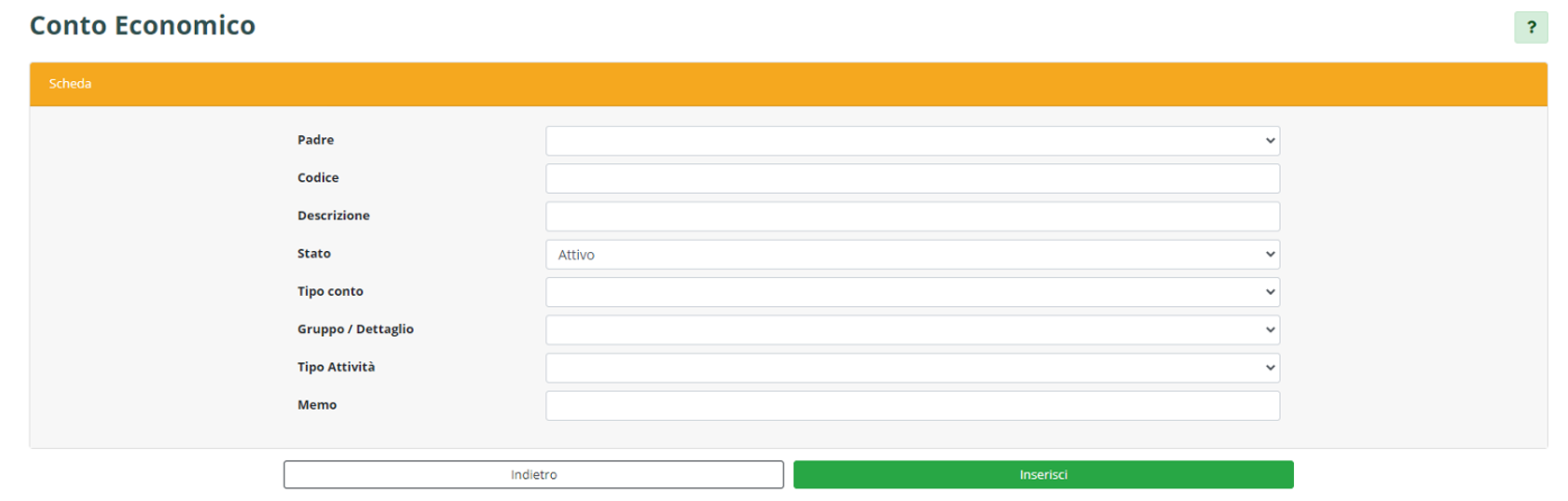 È possibile indicare se i costi/ricavi che confluiranno in quel conto sono di natura “commerciale”, “istituzionale” o “promiscua”.