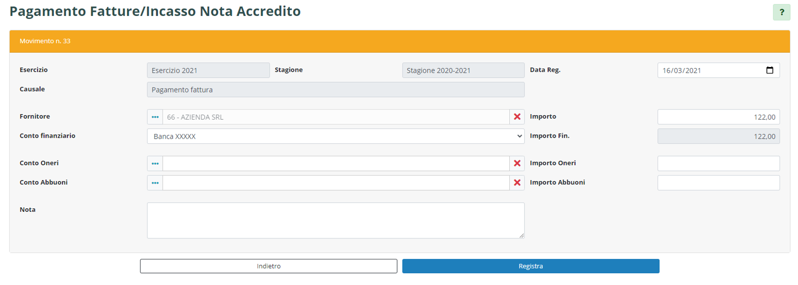 Una volta compilata la scheda, cliccare su "Registra" per confermare l’inserimento del movimento.