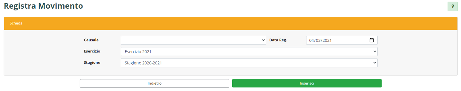 È possibile scegliere tra diverse causali a seconda del movimento che deve essere registrato.