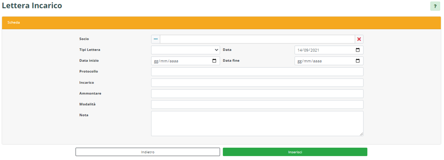 - Incarico: mansione per il quale si intende instaurare il rapporto di collaborazione;