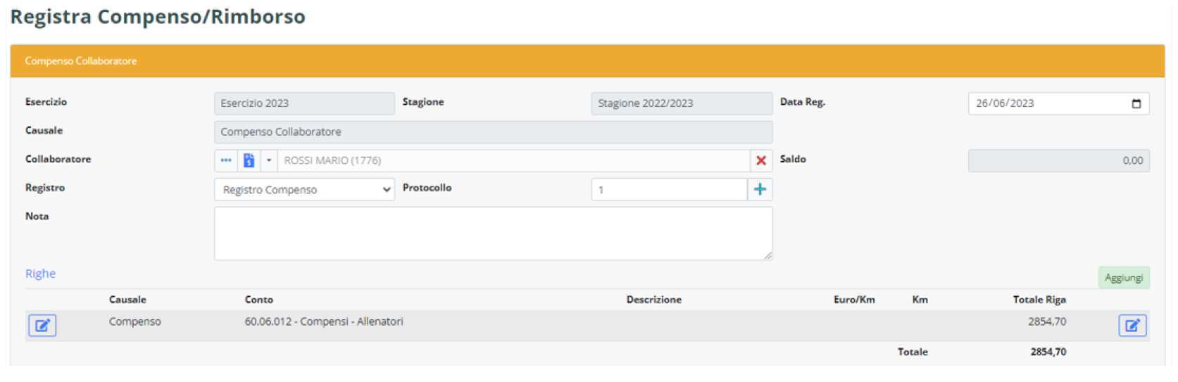 Cliccando sul pulsante “Modifica” si rientrerà nella maschera di registrazione del compenso.