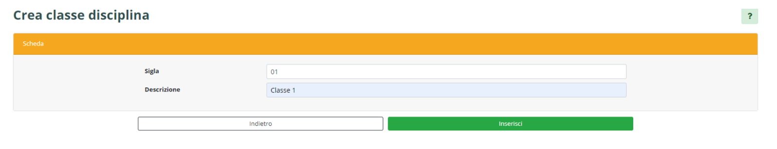 La definizione delle Classi si effettua entrando in Anagrafiche > Classi e Discipline > Nuovo.