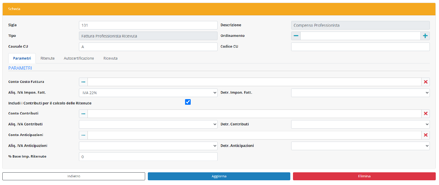 La parametrizzazione del tipo compenso è già predefinita ma può essere comunque personalizzata.