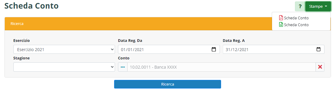 Con il pulsante “Stampe” è possibile esportare il tutto in formato .pdf e .xls.