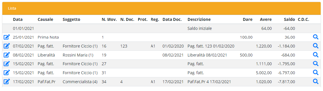 Permette di selezionare ogni conto e visualizzare tutte le relative movimentazioni.