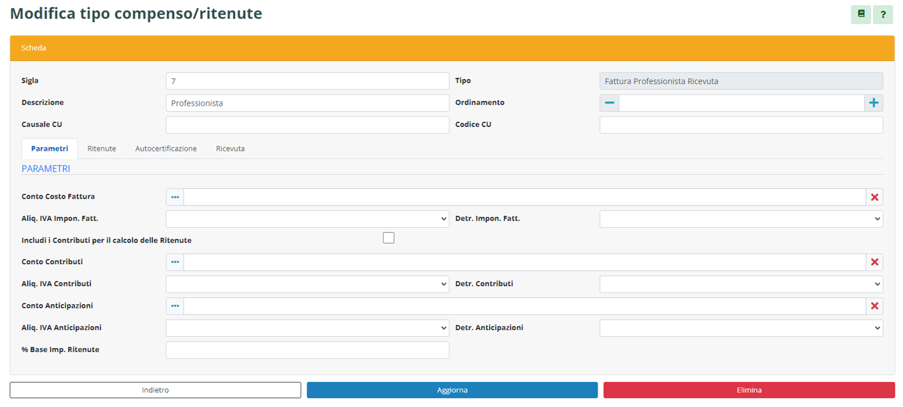 La parametrizzazione del tipo compenso è già predefinita ma può essere comunque personalizzata.