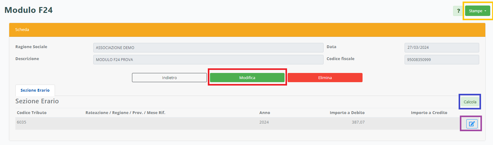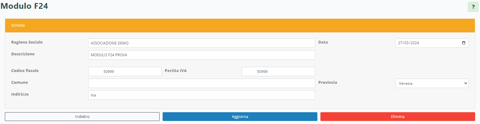 - Con il pulsante Modifica si potranno modificare i dati di testata del modulo.