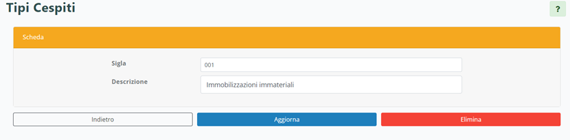 Dopo aver premuto il pulsante “Aggiorna”, troverete le varie tipologie nell’elenco dei “Tipi Cespiti”.