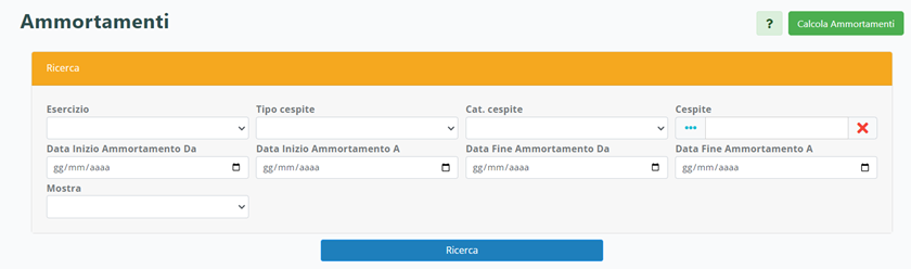 Nella funzione “Ammortamenti” sarà possibile calcolare gli ammortamenti dei vostri Cespiti grazie ai parametri precedentemente inseriti.