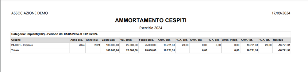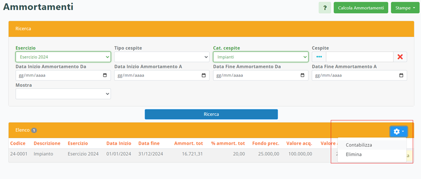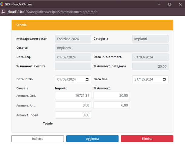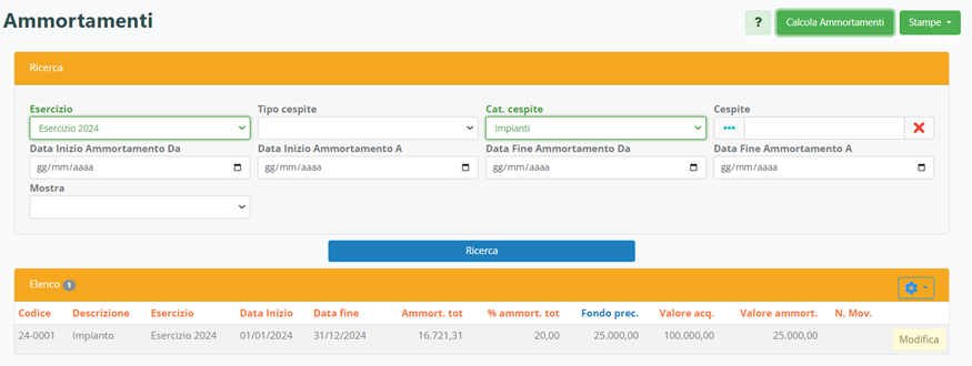 Dopo aver elaborato l’ammortamento, comparirà il corretto calcolo.