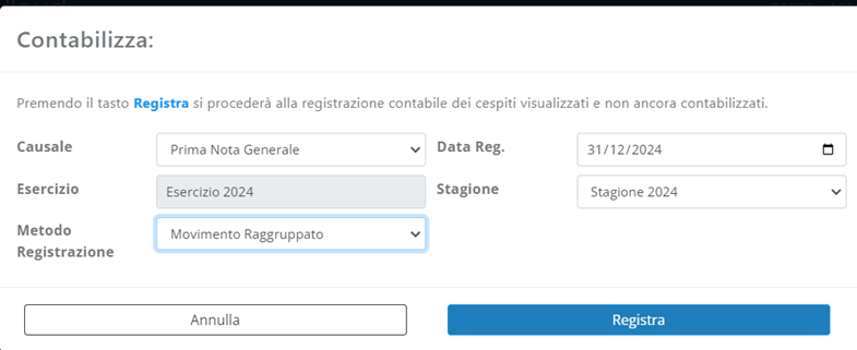 Si aprirà poi, una maschera in cui potrete indicare come desiderate contabilizzare il movimento.