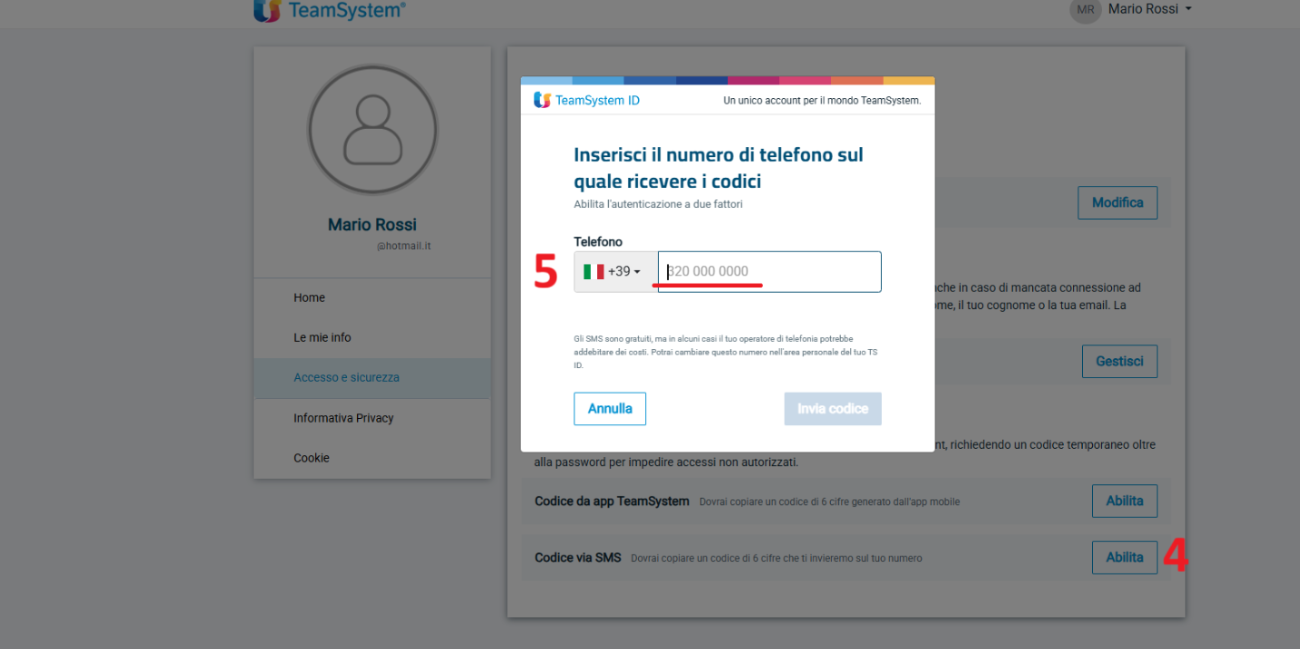 Inserire nell’apposito campo il nuovo numero, confermandolo poi con la ricezione del primo OTP.